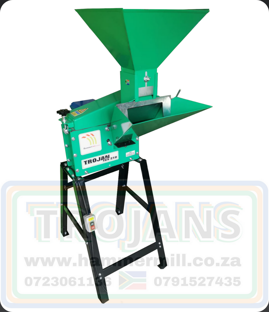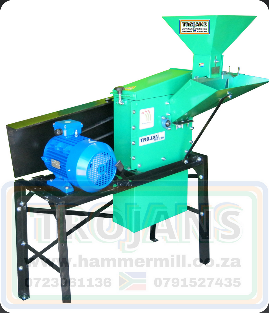 Trojan TGS210P MegaMill 7HP petrol belt driven hammer mill, with 2 blades and 10 hammers that can grind and shred any wet or dry product for human and animal consumption.